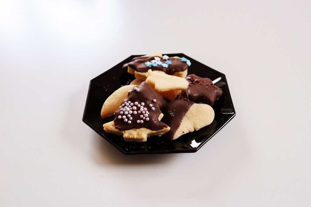 – den Teig ca. 0,5 cm dick ausrollen und Plätzchen ausstechen