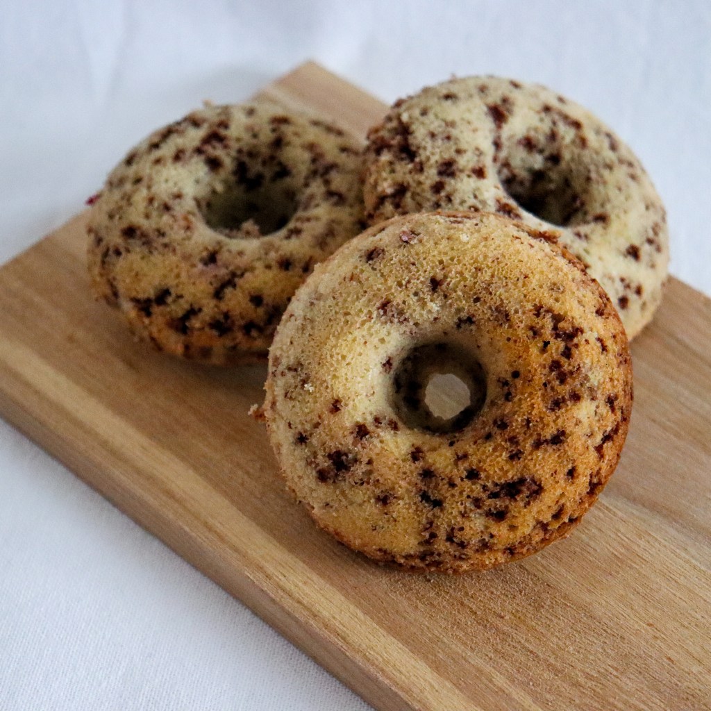 - Teig in eine Donutform geben und bei 160°C bei ca. 20 Minuten Umluft backen