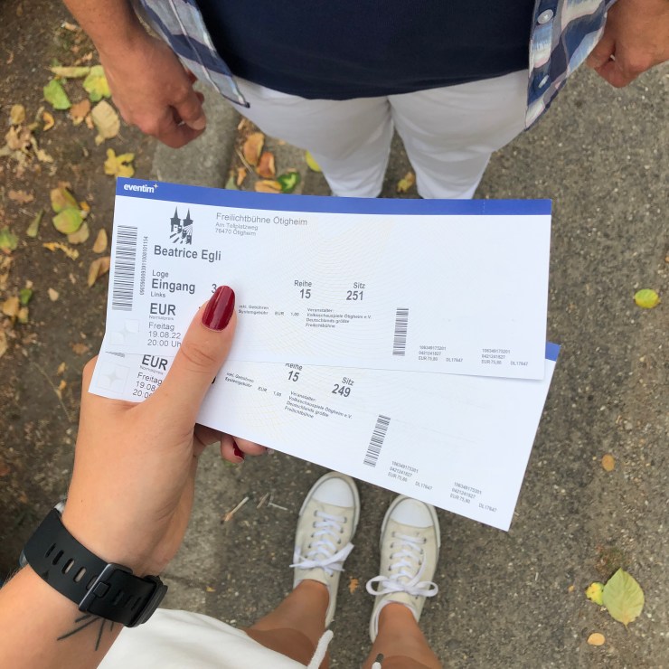 Nach einer Verschnaufpause sind wir den Weg zur Freilichtbühne in Ötigheim abgelaufen. Wir wollten Bounty die Tage über stehen lassen, da nach dem Konzert die Parkplatzsituation wahrscheinlich eher schwierig gewesen wäre. Auf dem Weg dorthin haben wir allerdings entschieden zu fahren, weil der Weg quer durch den Wald gegangen wäre. Zusätzlich sind wir mit dem Auto innerhalb von 10 Minuten auf dem Parkplatz gewesen.