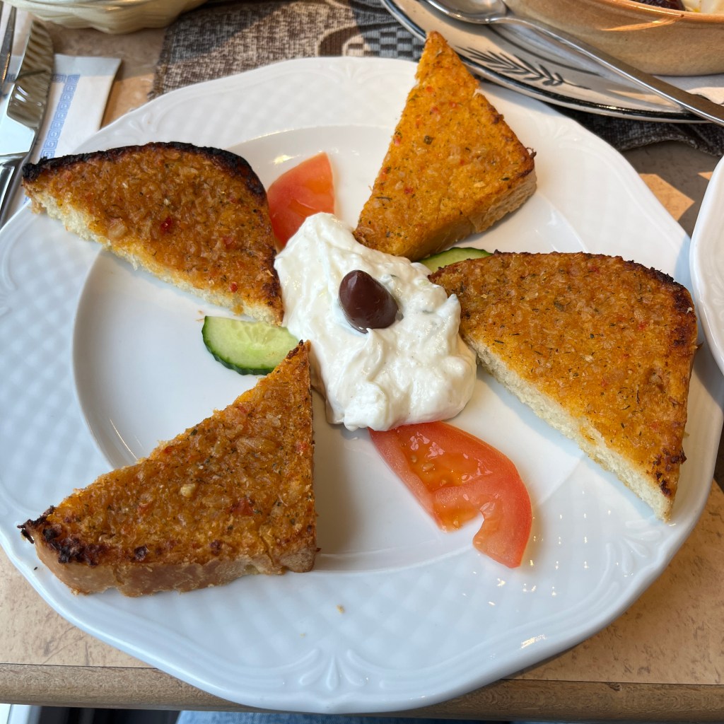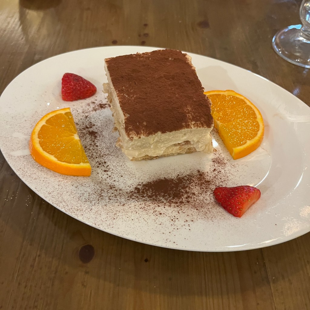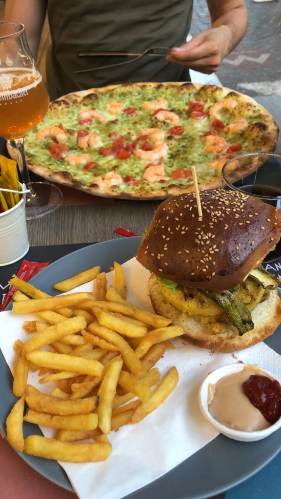- hier: Bruschetta + Pizzabrötchen mit veganer Aioli, Pizza Verdura ohne Spinat mit veggy Hähnchen, Tiramisu