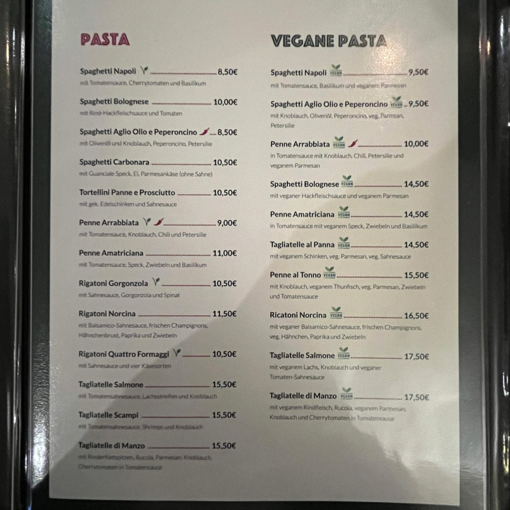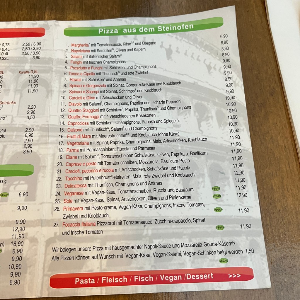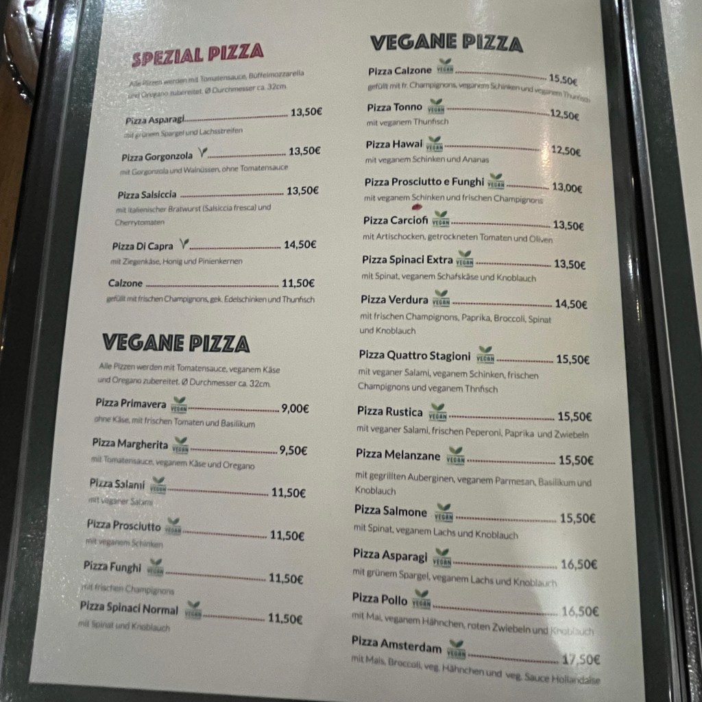 - vegane Pizza- und Pasta-Gerichte, Nachspeisen